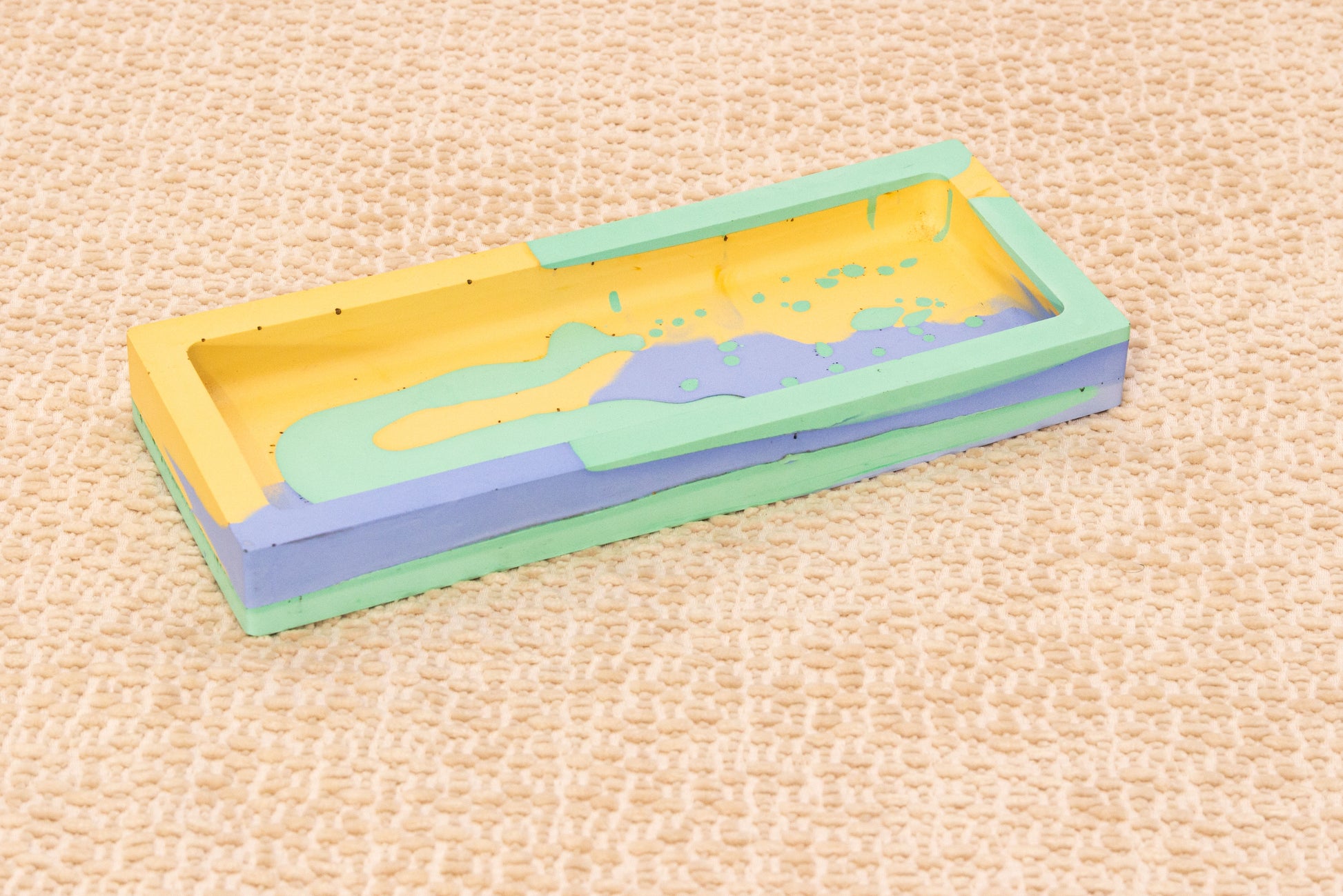 Bandeja decorativa feita em pó cerâmico não tóxico.